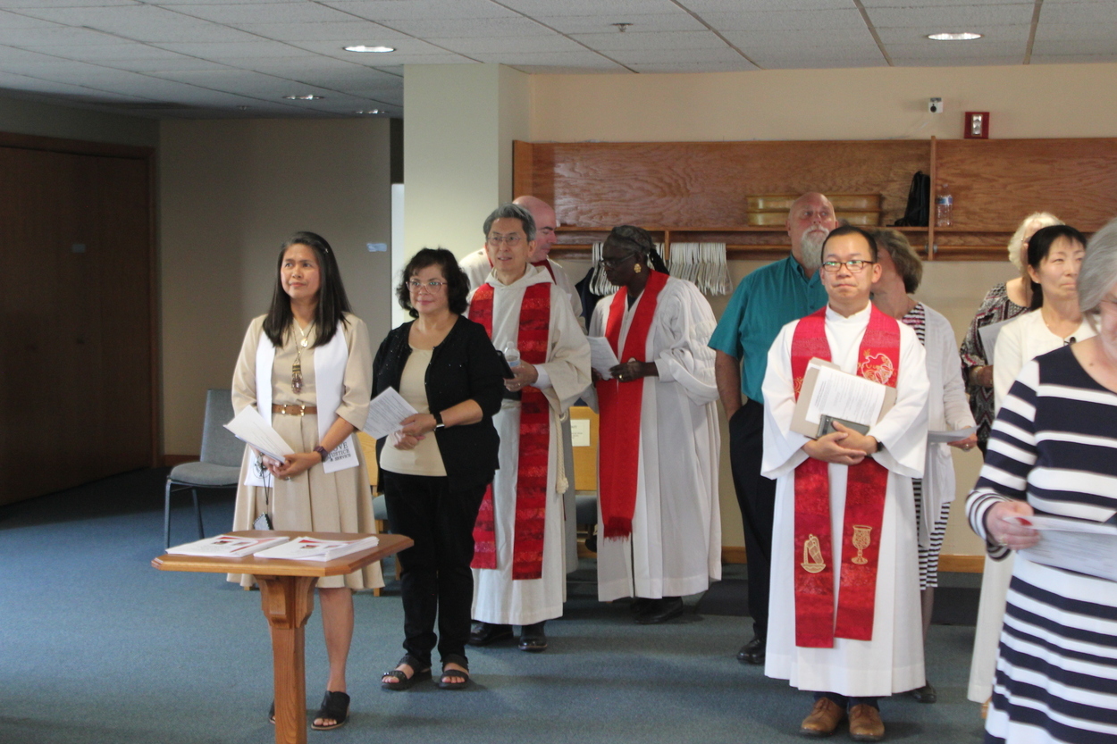 The moving service incorporated many voices from around the district and parts of DS Chong's Korean Heritage. The service started out with the playing of the Ching by Rev. Jeremiah Lee. The Psalm of Praise was accompanied by the singing of "O So So (Come Prince of Peace)". Under the direction of Rev. H. Kim, the NIC Korean-American Pastors beautifully sang the anthem "He Leadeth Me" in Korean.